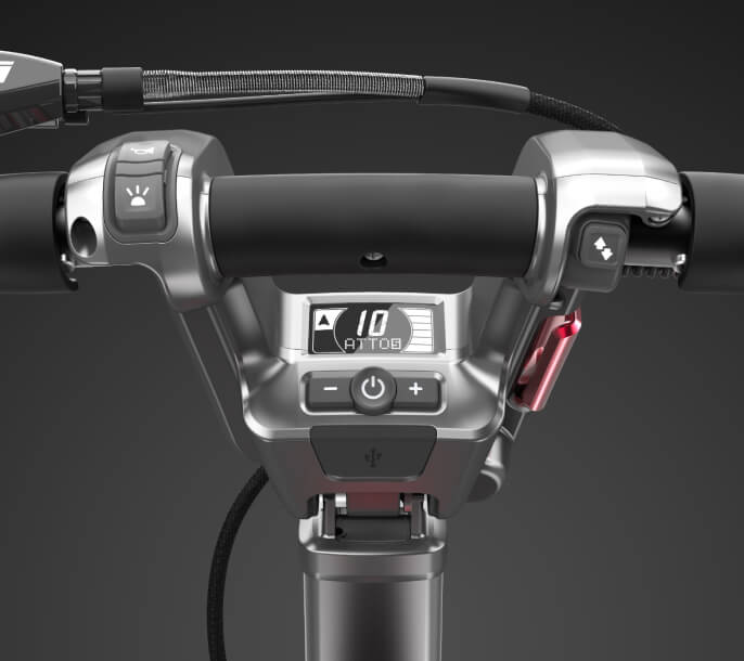 ATTO SPORT’s illuminated control panel lets you easily personalize features like sounds, alerts, regional units, maximum speed, and more — ensuring every ride is perfectly suited to your needs.