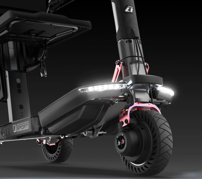 ATTO SPORT’s innovative 3-wheel configuration allows effortless navigation through tight, challenging, or narrow spaces, while its extra-wide rear wheel spacing ensures exceptional stability and confidence on every ride.
